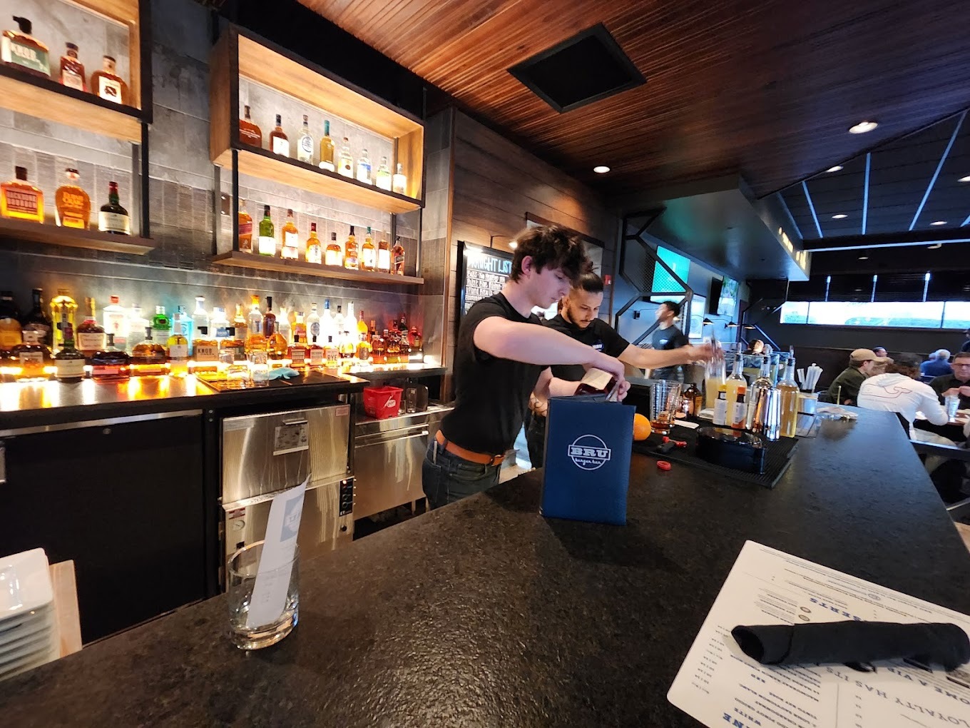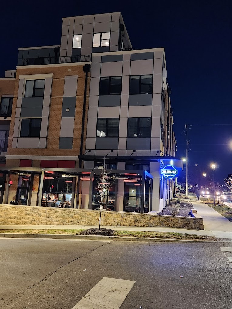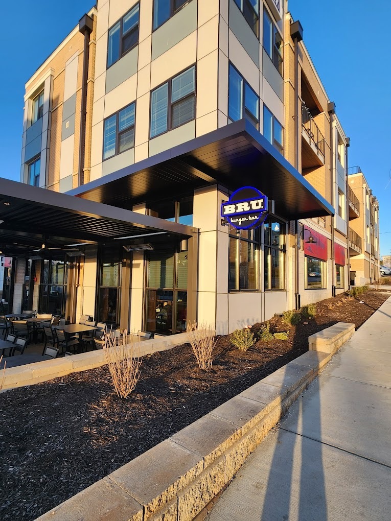 BRU Burger Bar at 229 S Grant Street, Bloomington is a few blocks from Indiana University's main campus and the downtown Bloomington dining corridor. Craft Construction Management delivered the tenant finish for Cunningham Restaurant Group's 15th BRU location — restaurant kitchen, bar, dining room, and exterior storefront improvements on a Grant Street footprint.